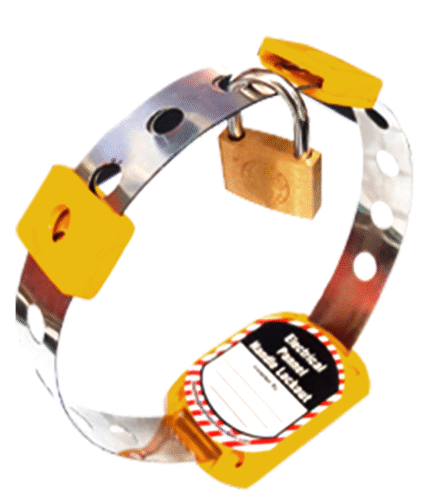 Electrical panel lockout (LOTO) Clip‑on or universal breaker lockouts that clamp on the breaker toggle and are held in OFF position with a padlock. These are sized or adjustable for MCCB, MCB, RCCB, RCBO.