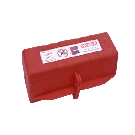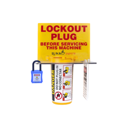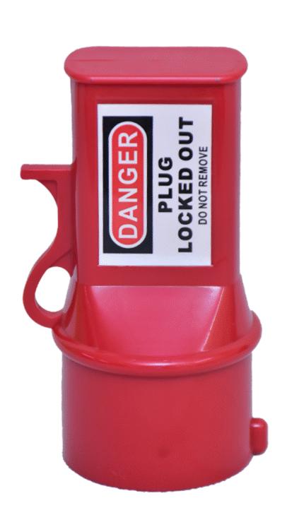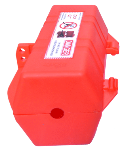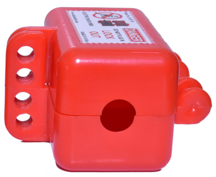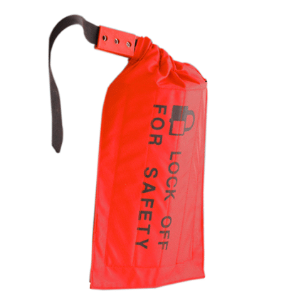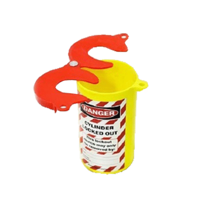 Gas cylinder lockout device made of durable ABS plastic that completely encloses the cylinder valve, accepts multiple padlocks via an integral hasp, and prevents unauthorized opening of industrial gas or propane cylinders during maintenance and storage.