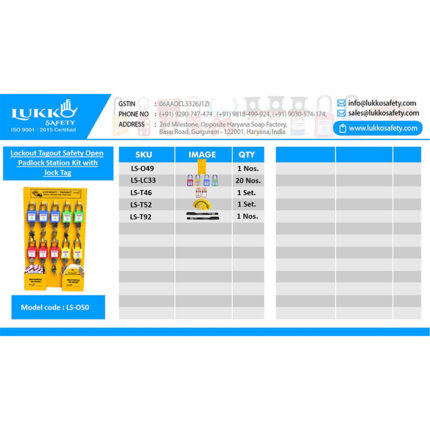 Lockout Tagout Safety Open Padlock Station - with material (20 OSHA Lock + Tag set +  Pen)