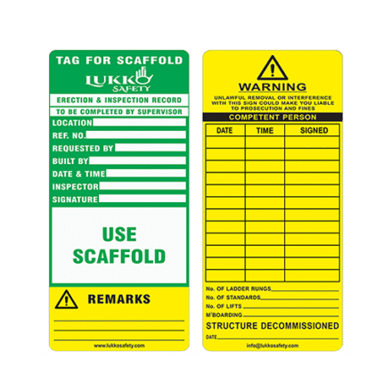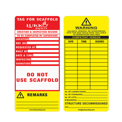 1 Scaffolding tag holder + 1 “Do not use scaffold Erection and inspection Record” Scaffolding insertion tag WHITE + RED + YELLOW