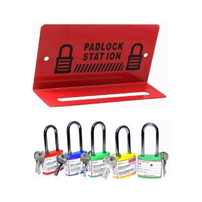 Metallic padlock hanging rack kit with Long shackle locks