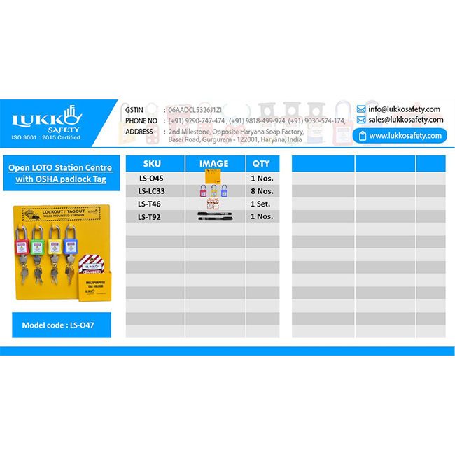 Open LOTO Station Centre – with material (8 OSHA Lock + Tag set + Pen)