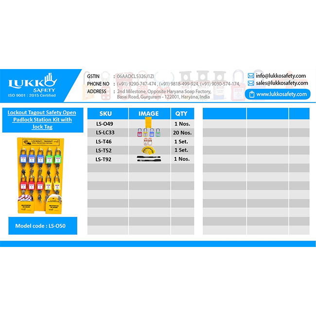 Lockout Tagout Safety Open Padlock Station – with material (20 OSHA Lock + Tag set +  Pen)