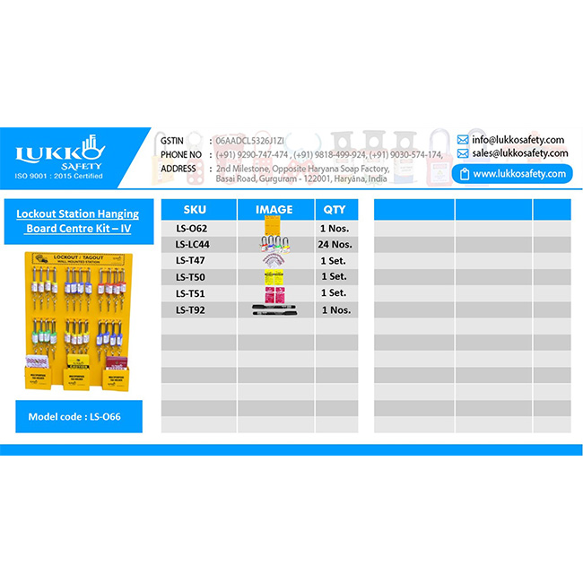 Lockout Station Hanging Board Center – with material (24 long shackle Lock + Tag sets +  Pen)