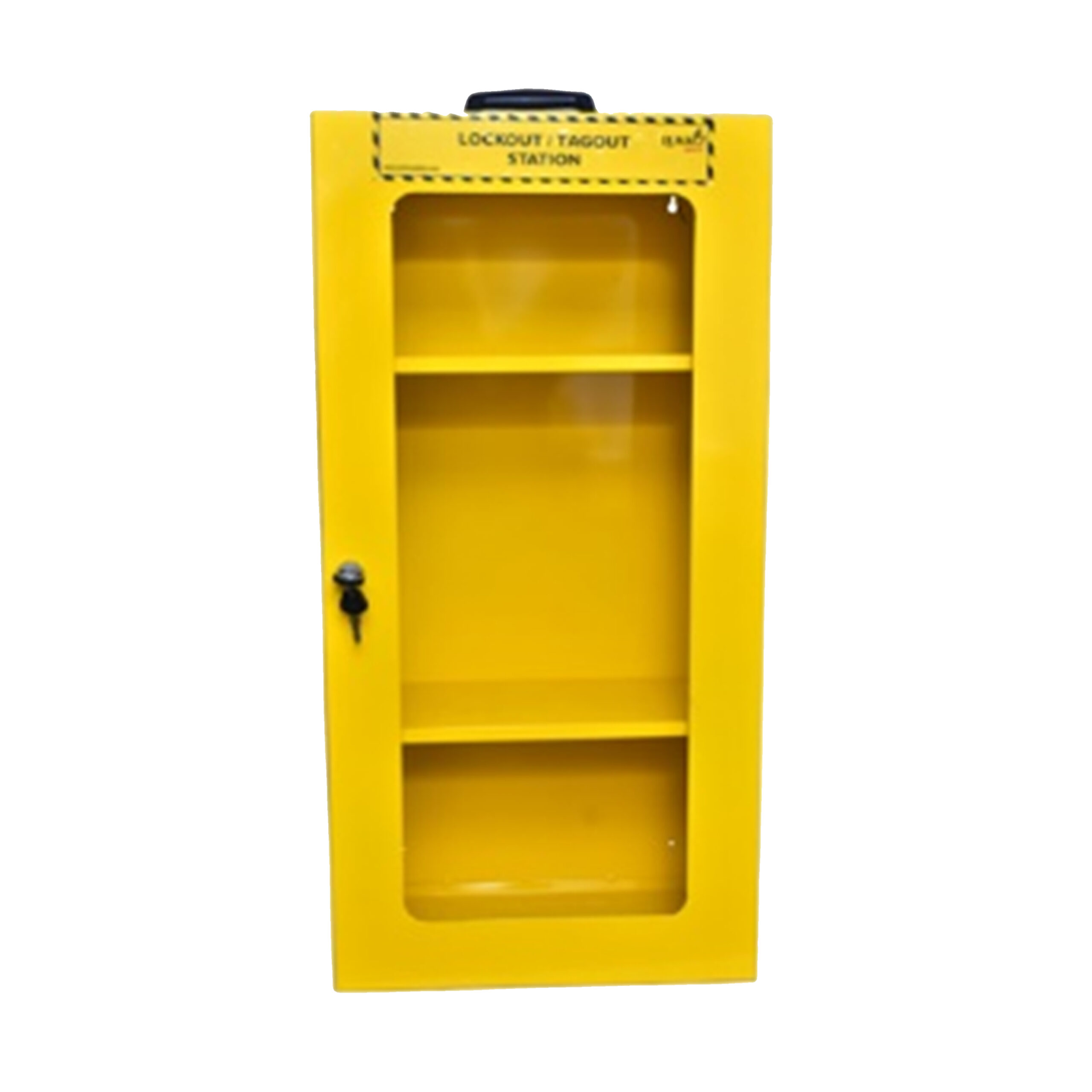 with two keys on the door. Used for the Storage of Padlocks, Keys and Lockout products.