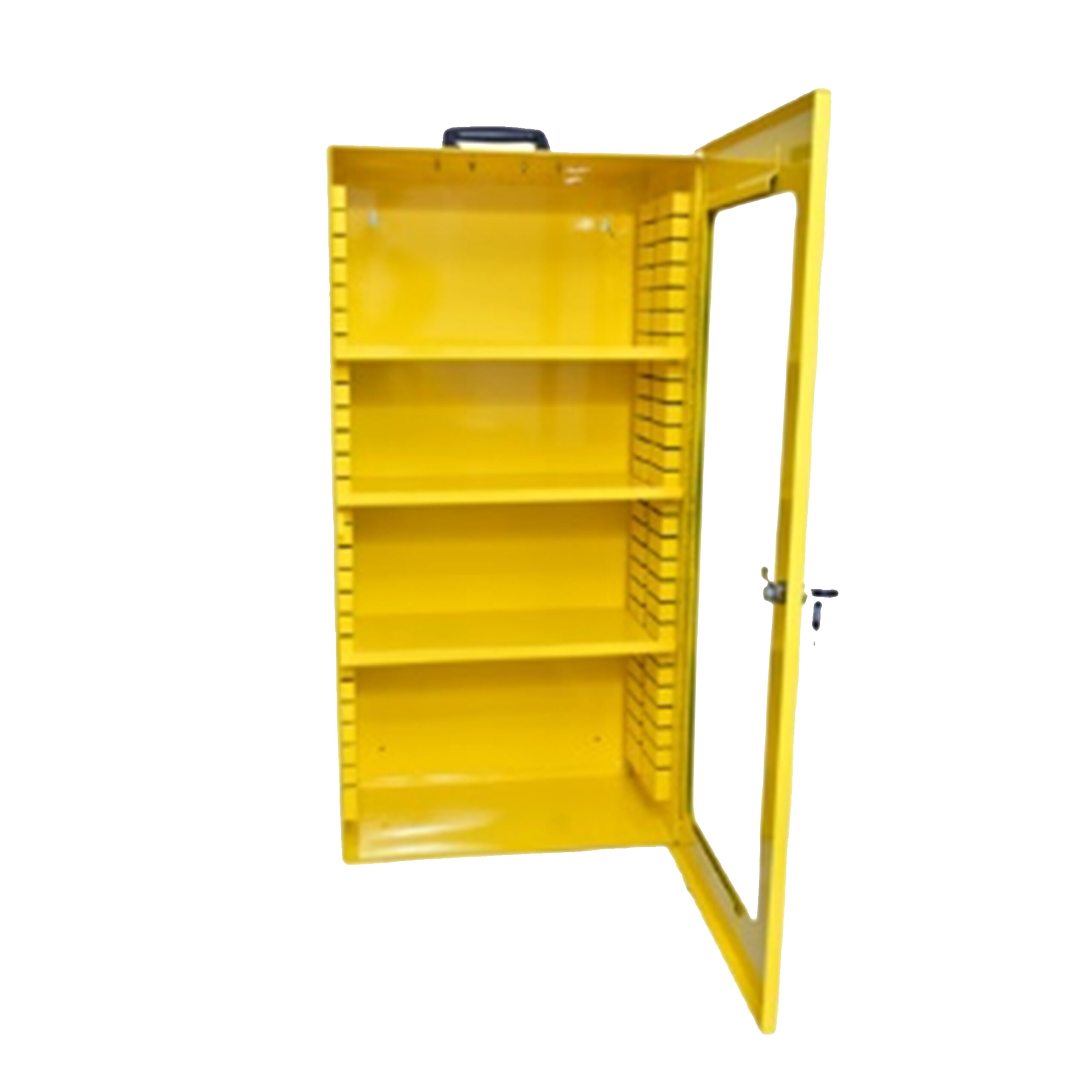 with two keys on the door. Used for the Storage of Padlocks, Keys and Lockout products.