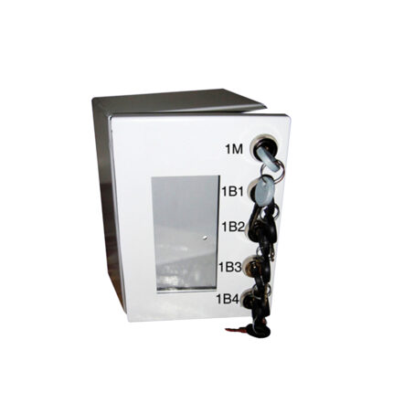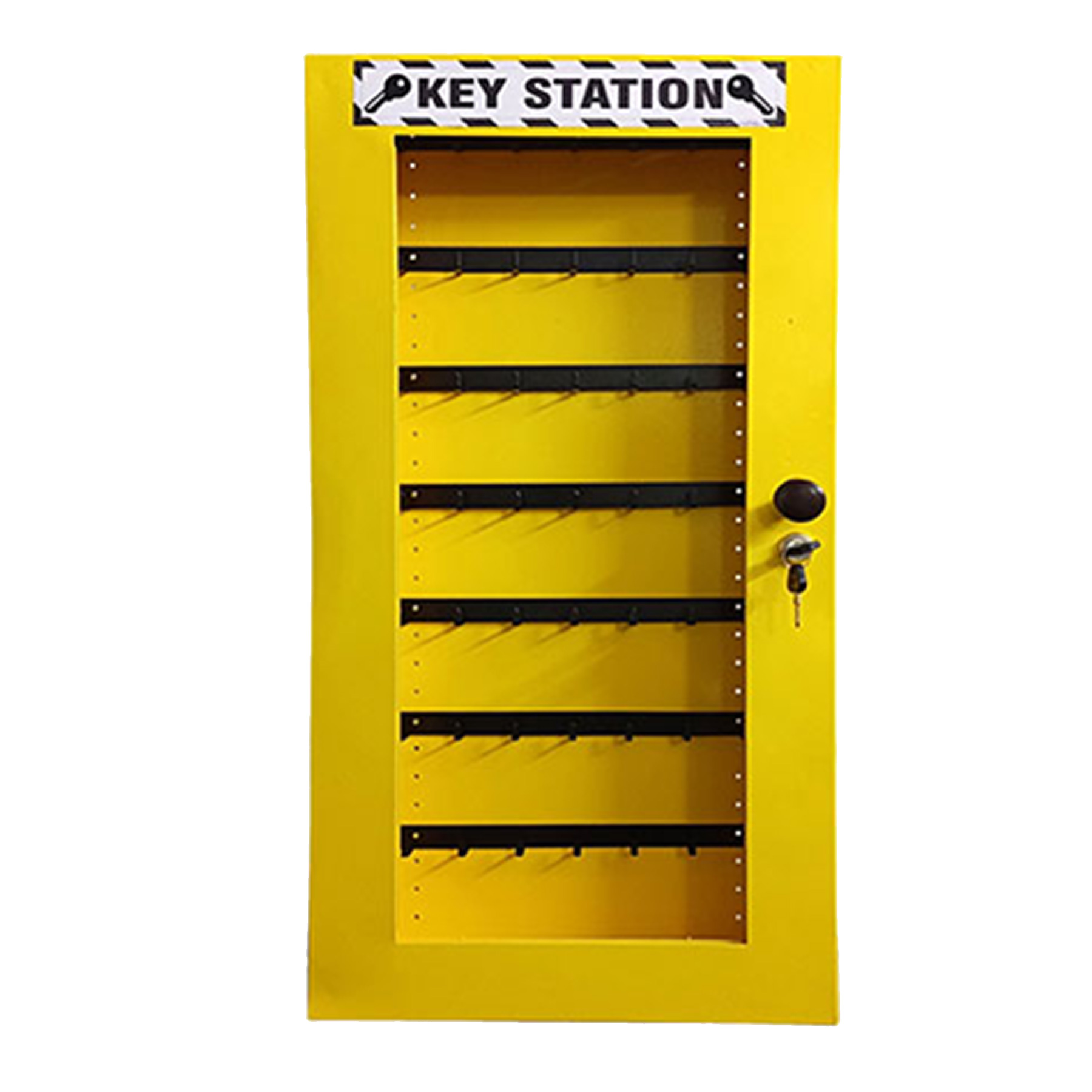 with two keys on the door. Used for the Storage of Padlocks, Keys and Lockout products.
